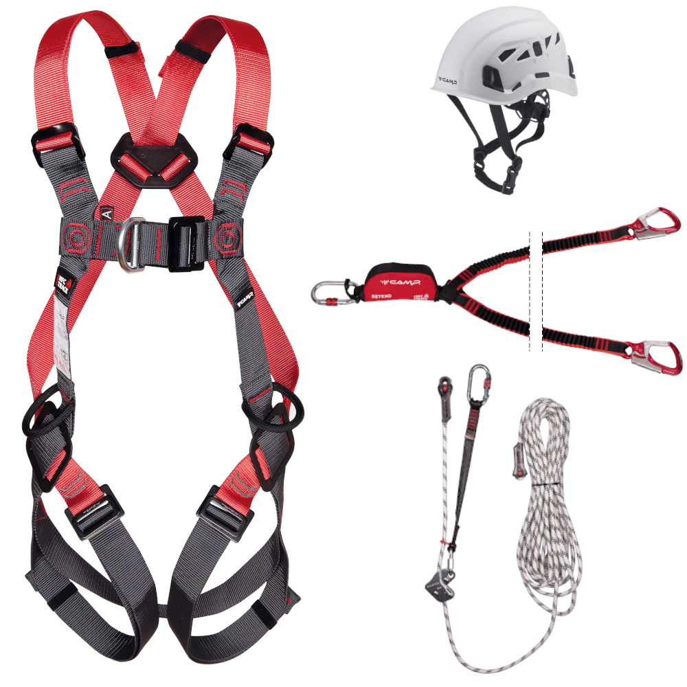 Kit anticaduta indispensabile per accedere e lavorare su tetti attrezzati con ancoraggi fissi e linee vita composto da: